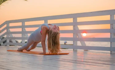Cours de yoga en groupe (8-15 pers) à domicile en Grande-Terre, Guadeloupe. Session adaptée à tous niveaux au Gosier et environs. Réservez votre séance sérénité !