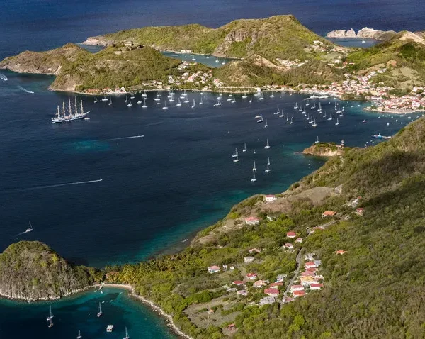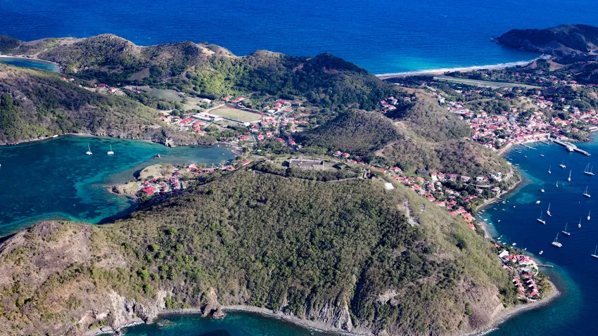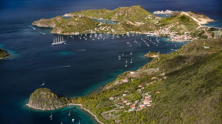 Situé à environ 15 kilomètres au sud de la Basse-Terre, l’archipel des Saintes se compose de neuf îlots dont deux sont habités : Terre-de-Haut et Terre-de-Bas. Accessible depuis Saint-François en navette maritime avec escale à Marie-Galante, Terre-de-Haut est la plus touristique et la plus visitée. La baie des Saintes figure parmi les plus belles du monde selon l’UNESCO, avec ses eaux turquoise, ses mornes verdoyants et ses îlets sauvages.